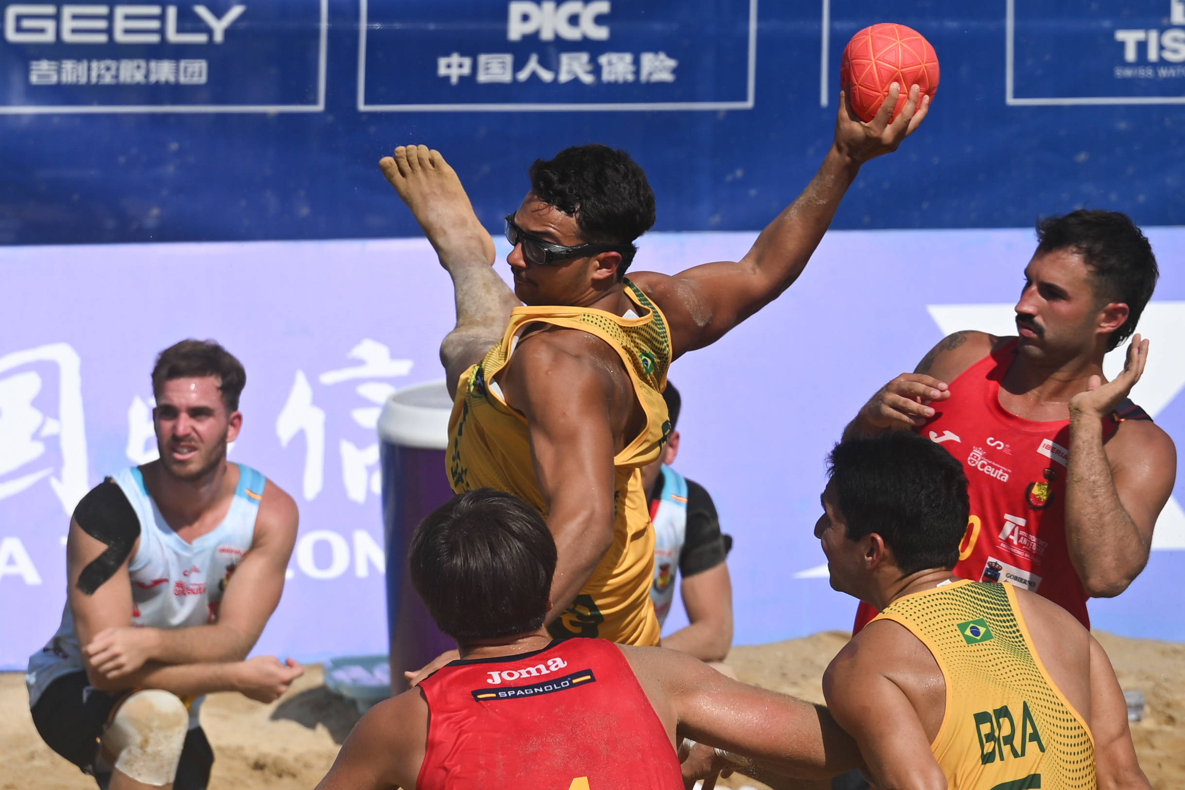 2025年8月12日,巴西队球员贡萨尔维斯(中上)在成都世运会沙滩手球男子铜牌赛中进攻。新华社记者 陈振海 摄《水浒传》中的张顺因水性出众被称作“浪里白条”,而在海月广场场馆群,你将看到数十个“张顺”,因为水球比赛在这里举行。水球原本就是集游泳、手球和橄榄球的特点于一体的运动,不仅要求运动员会游,更要求其具备强对抗中的传球、射门和防守能力。三亚亚沙会的水球比赛在三亚湾近海举行,比起常规室内水球,海水流动和风力变化,都将对选手的力量、速度、耐力和灵活性提出更高要求。